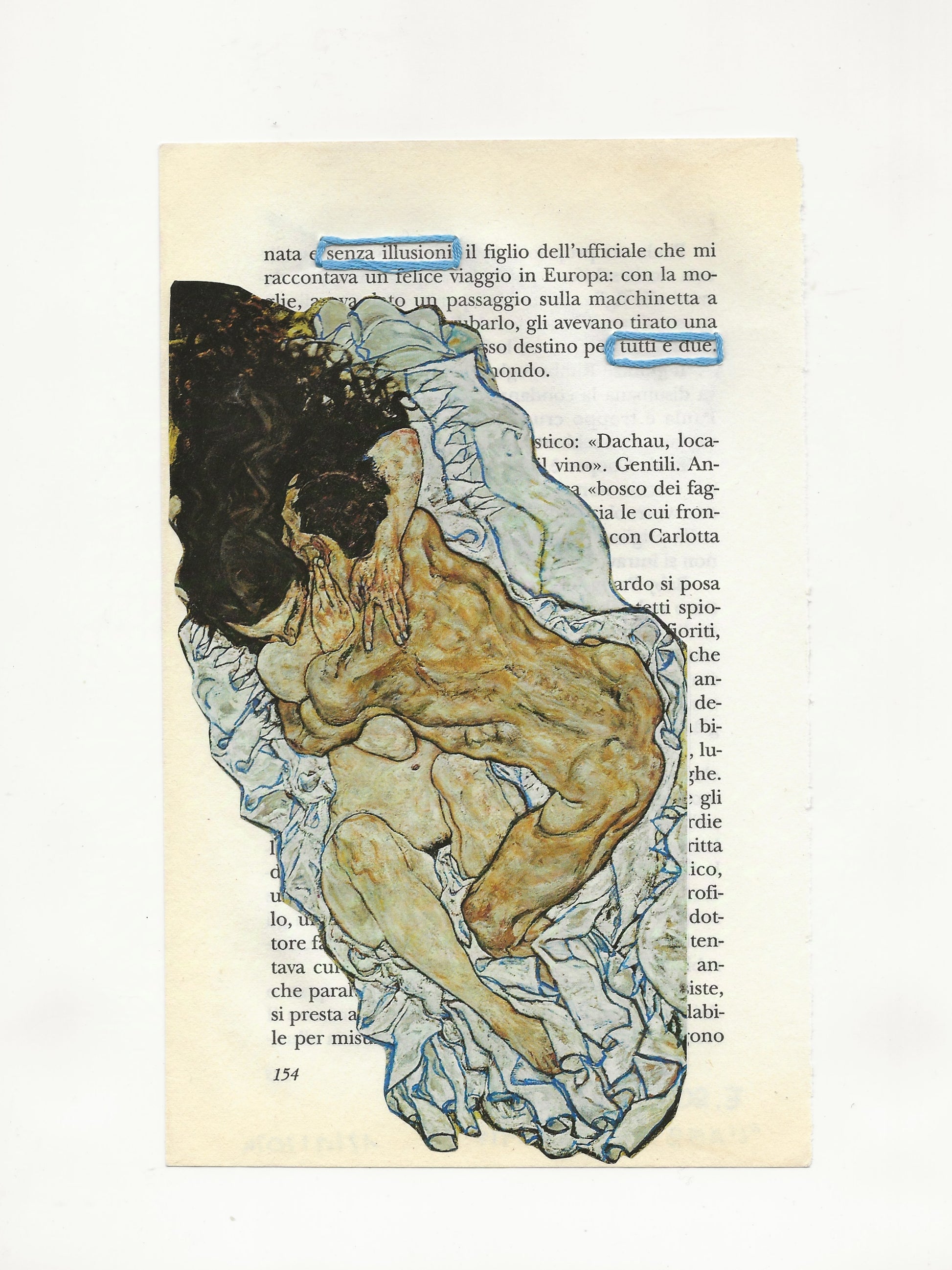 The work transforms a fragment of printed prose into an intimate reflection on vulnerability, connection, and shared truth.